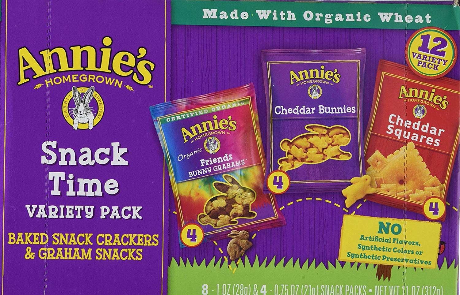 Annie’s Variety Snack Pack, Cheddar Bunnies, Friends Bunny Grahams and Cheddar Squares, Baked Snack Crackers, 12 (11 oz.) Pouches [amazon.com]