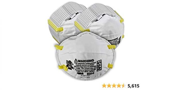 3M Private Protecting Tools Particulate Respirator 8210, N95, Smoke, Mud, Grinding, Sanding, Sawing, Sweeping, 20/Pack – $17.85