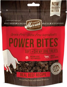 6-Oz Merrick Power Bites Soft & Chewy Dog Treats (Real Beef Recipe) $3.89 w/ S&S + Free Shipping w/ Prime or on $25+