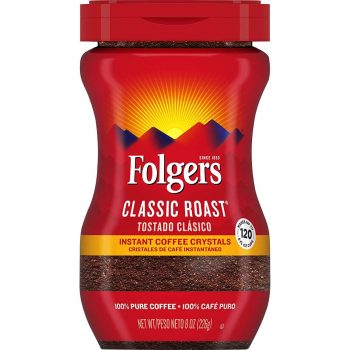 8-Oz Folgers Classic Roast Instant Coffee Crystals three dollars.about 70-75 new location/ S&S Free Shipping new location/ Prime or in twenty five dollar