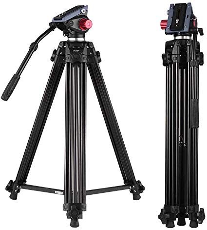 Andoer Video Tripod, 71 inch Professional Heavy Duty Aluminum Tripod with Quick Release Plate and Fluid Drag Pan Tilt Max Load 17.6lb 180cm for DSLR Camcorder