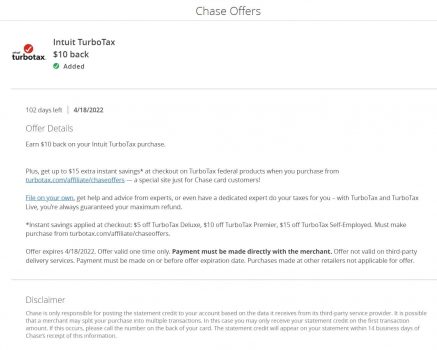 Plus, rise up to $15 additional instantaneous financial savings* at checkout on TurboTax federal merchandise once you buy from turbotax.com/affiliate/chaseoffers [turbotax.com] — a particular web site only for Chase card clients!