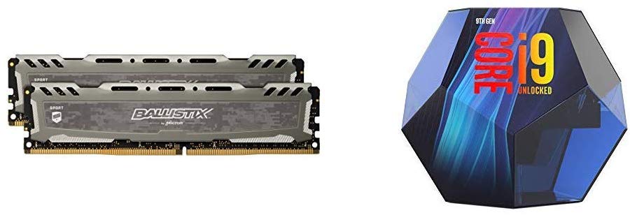 Home » Electronics » Crucial Ballistix Sport LT 3200 MHz DDR4 DRAM Desktop Gaming Memory Kit 16GB (8GBx2) CL16 BLS2K8G4D32AESBK and i9-9900K Desktop Processor 8 Cores up to 5.0 GHz Turbo unlocked LGA1151 300 Series 95W