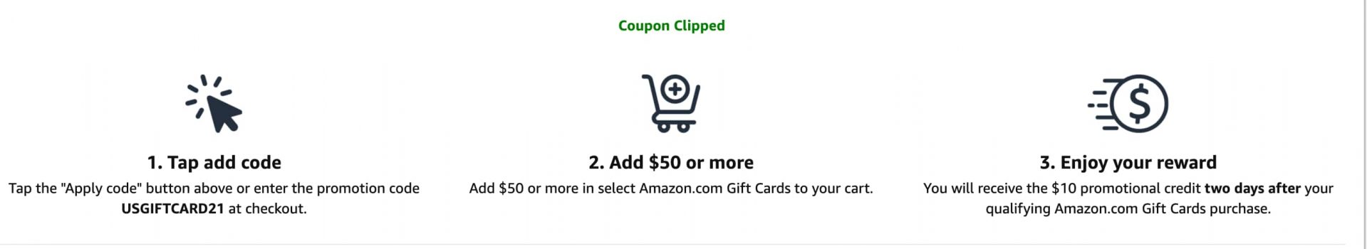 You will obtain the $10 promotional credit score two days after your qualifying Amazon.com Gift Cards buy.