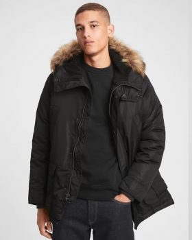 Gap Factory : Men’s ColdControl Max Parka (True Black) for $49.99. W/ Detachable Fur Trim AND Free Shipping
