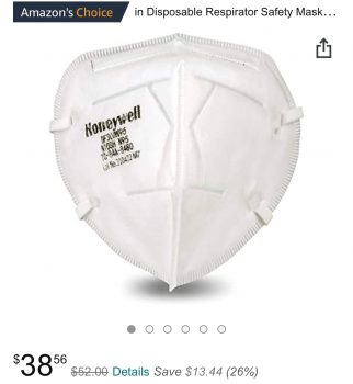 Honeywell Safety DF300 N95 Flatfold Disposable Respirator- Box of fifty, White,One SZ W/Adjustable Nose Clip.F/S For Amazon Prime Members. 78 Cents A PC, Made In MX