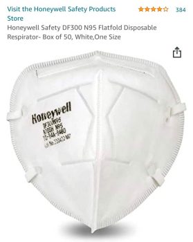 NIOSH – Honeywell Safety DF300 N95 Flatfold Disposable Respirator- Box of fifty, White,One SZ W/Adjustable Nose Clip.F/S For Amazon Prime Members. 74 Cents A PC, Made In MX