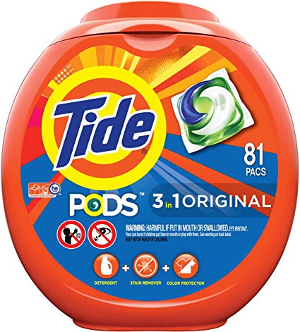 Tide Pods 3 in 1 HE Turbo Laundry Detergent pacs,81 count tub..$16.97 w 3.00 off coupon Amazon free shipping with prime